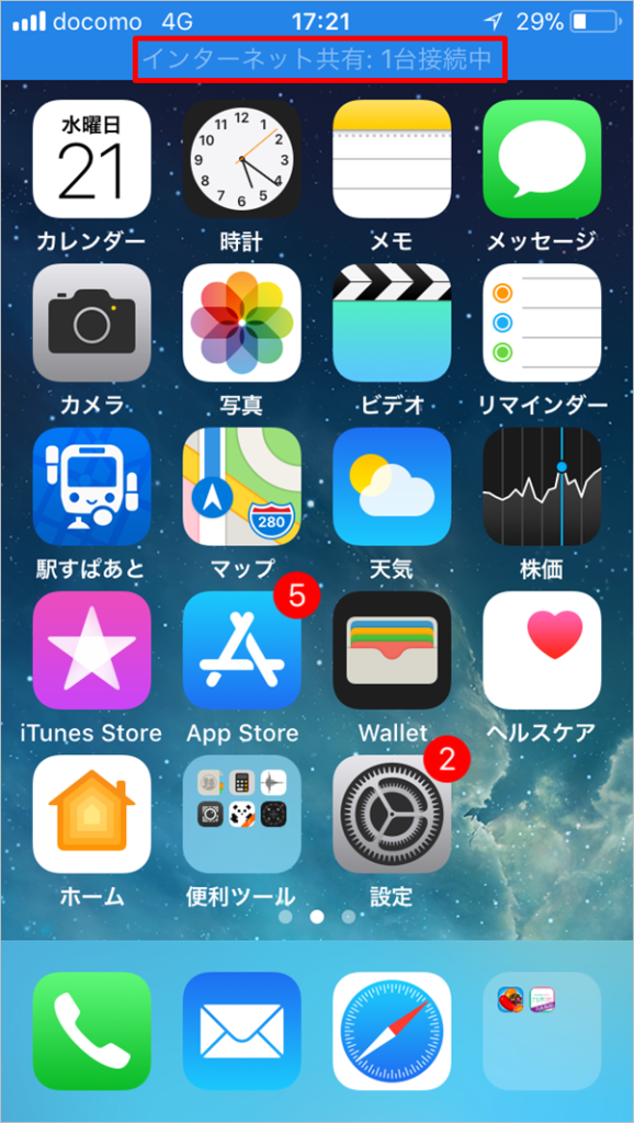 iPhone5Sでもテザリング接続ができちゃったんです。